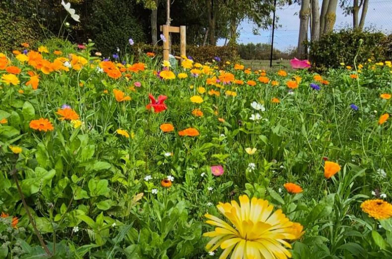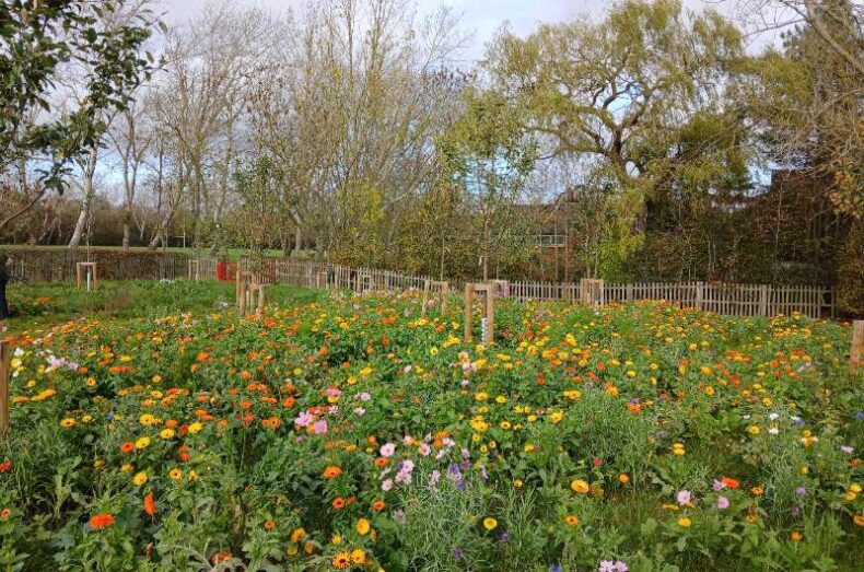 To complement the orchard habitat, both ornamental and native species rich wildflowers and longer grass areas have been seeded. These were planted by volunteers. Including volunteers from local primary school Trinity St Marys who have also kindly visited on a school workshop to add more wildflower plugs to this mix and will be returning next year to continue their great work.