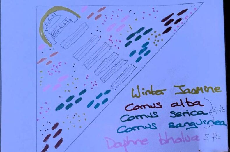 Planting started going in this winter (2024/25) when ground conditions allowed. The garden will continue to develop over the next few years, as the plants become established, and some seating is added.